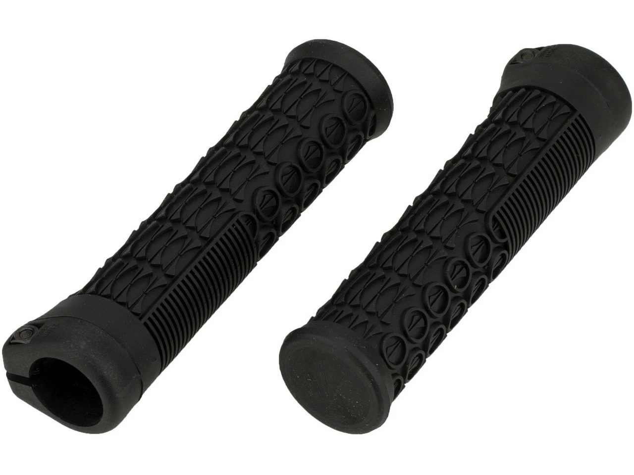 Die SDG Thrice Lock-On Lenkergriffe mit einem Durchmesser von 31 mm besitzen ein ergonomisches Griffmuster mit tiefen Noppen, was für einen ausgezeichneten Griff an den Fingern sorgt. Das runde SDG-Icon Muster auf der Grifffläche dient dabei zur besseren Dämpfung und Druckverteilung.