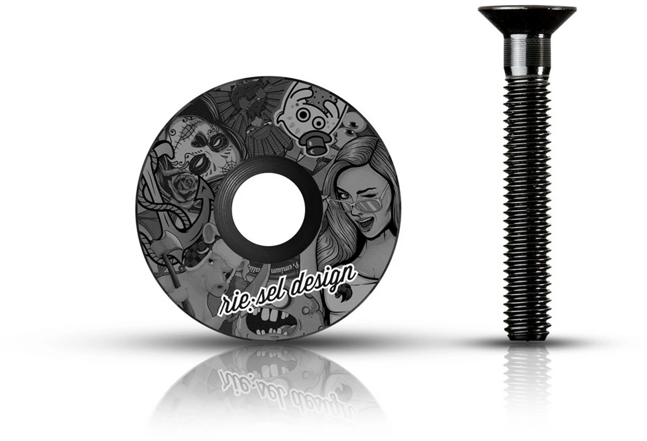 Technische Daten:Material:CarbonGröße:1 1/8″Anzugsdrehmoment max.:5 NmFeatures:original rie:sel Designeinzigartige DesignsSenkkopfschraube aus Aluminiumgeeignet für Road und MTBHerstellernummern:stickerbomb:RH-D013stickerbomb-ultra black:RH-D014girl:RH-D015monster:RH-D016camo:RH-D019dazzl:RH-D020kamikaze:RH-D021japan:RH-D022Lieferumfang:1 x Ahead-Kappe rie:sel stem:cap1 x Senkkopfschraube